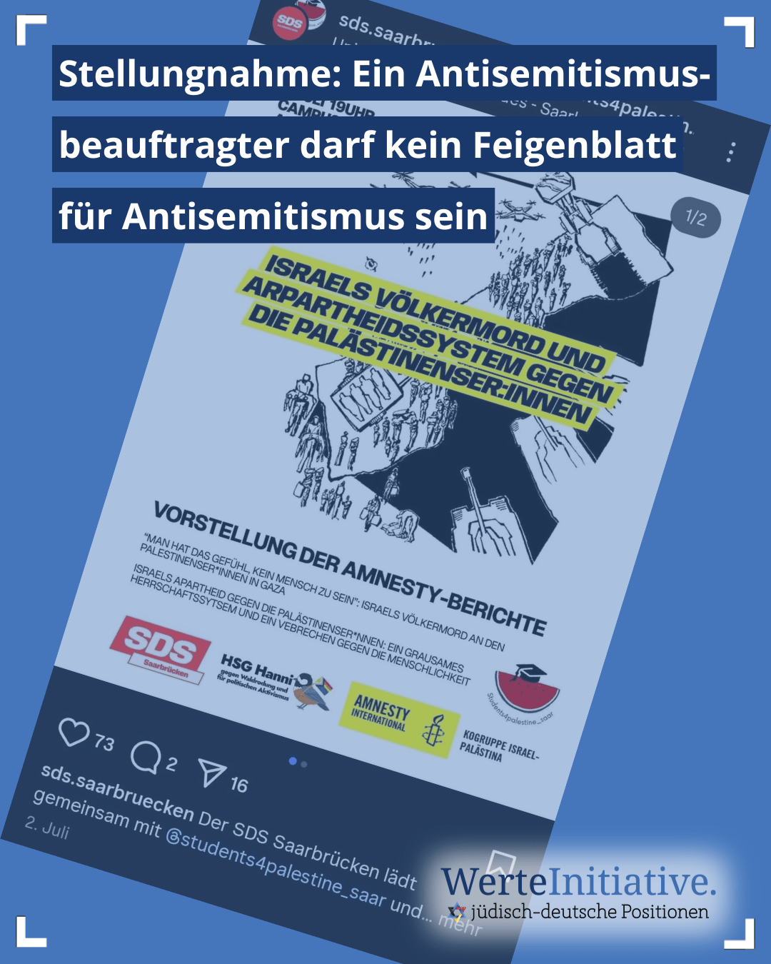 Es wäre ein fatales Signal, wenn ein bestellter Antisemitismusbeauftragter nicht nur nicht vor Antisemitismus schützt, sondern diesem durch sein aktives Handeln noch zusätzlich Vorschub leistet.